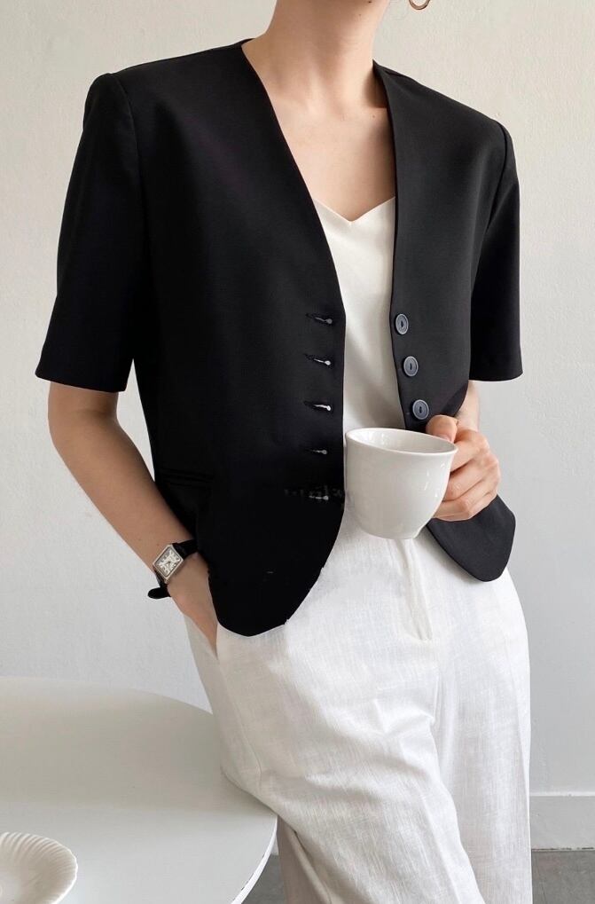 ノーカラー半袖ジャケット